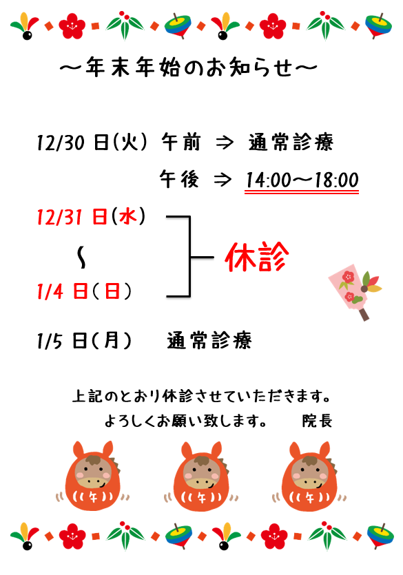 本年も多くの患者様にご来院、ご利用いただき誠にありがとうございました。